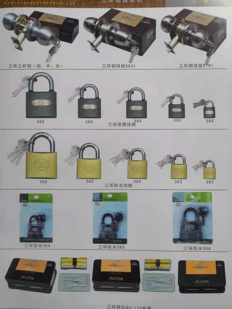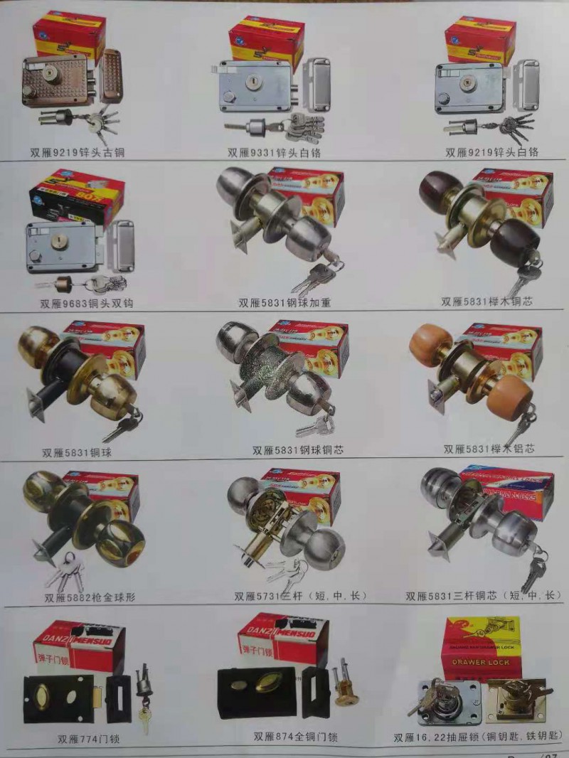 厂家办事处 烟台三环挂锁、门锁、蓬莱三菱锁具、蓬莱仙阁家具锁具、温州荣玛执手锁、自产自销蓬莱双雁牌门锁抽屉锁、球形锁、双雁牌挂锁。